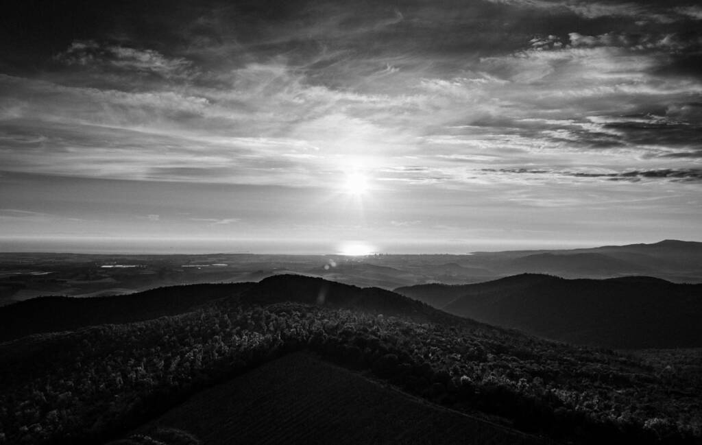 Quarantasette ettari di terra etrusca, sospesa tra la Maremma e il Mar Tirreno, tra boschi e colline, impiantate con Cabernet Franc, Syrah, Merlot e Grenache. In questo luogo di luce e vento i vitigni trovano la loro voce, riflettendo la complessità del suolo e del clima, fino dalla prima annata del 2004.